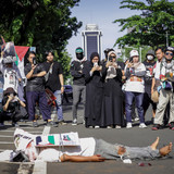 Foto: Teatrikal Warnai Aksi Bela Palestina di Depan Kedubes AS