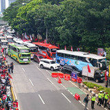 Jalan Sekitar GBK Macet: Bus Parkir di Jalan, Motor Penuhi Jalur Transjakarta