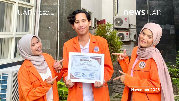 Kabar membanggakan kembali datang dari mahasiswa Universitas Ahmad Dahlan (UAD). Tim Orion yang beranggotakan Fitri Rochana (Fisika), Anggi Safitri (Teknik Kimia), dan Rizki Apriyanto (Fisika), berhasil meraih Juara 2 dalam ajang Lomba Esai Nasional 2025 yang diselenggarakan oleh Fakultas Ekonomi dan Bisnis Islam, UIN Siber Syekh Nurjati Cirebon.