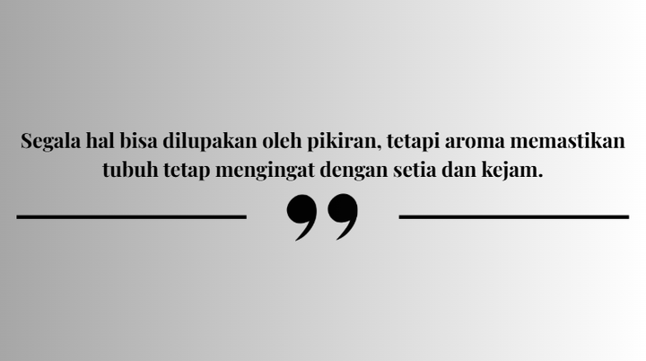 Ingatan yang dipicu aroma tidak pernah netral. Ia selalu sarat emosi dan luka. Bau tanah basah dapat membawa seseorang kembali pada pemakaman yang lama dilupakan. Bau kapur barus dapat menghidupkan kembali kecemasan masa kecil. Aroma memperlihatkan bahwa masa lalu tidak pernah benar-benar berlalu. Ia tinggal di tubuh dan menunggu kesempatan untuk berbicara.