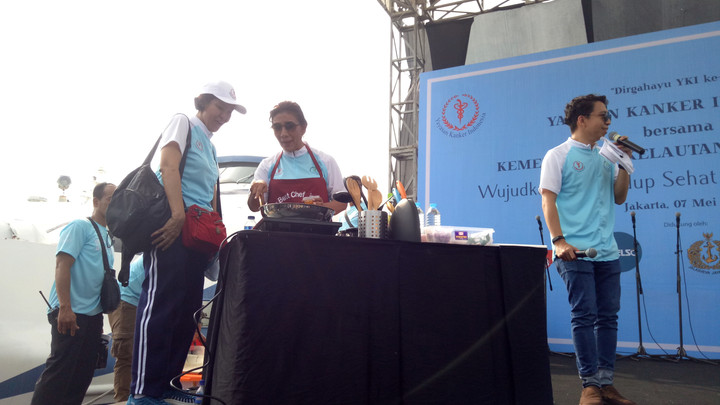 Usai bersenam ria dan mengecek satu per satu kapal tangkap milik nelayan di Pelabuhan Kali Adem, Muara Angke, Jakarta Utara, Menteri Kelautan dan Perikanan Susi Pudjiastuti menyempatkan diri untuk memasak. Susi masak makanan kesukaannya yaitu ikan kakap pindang gunung.